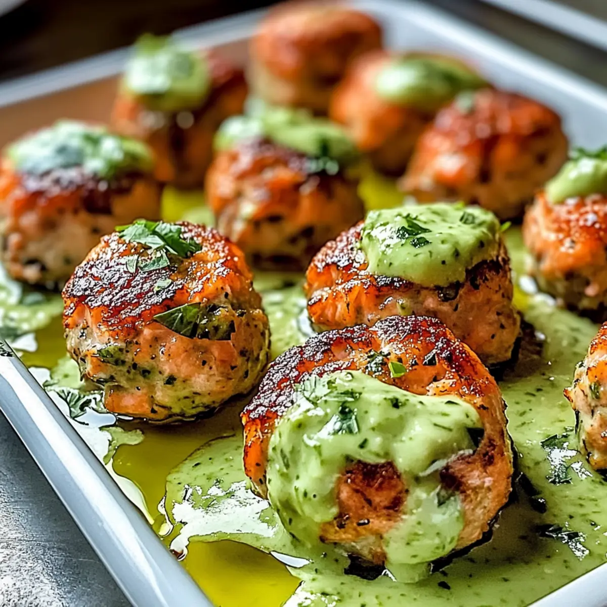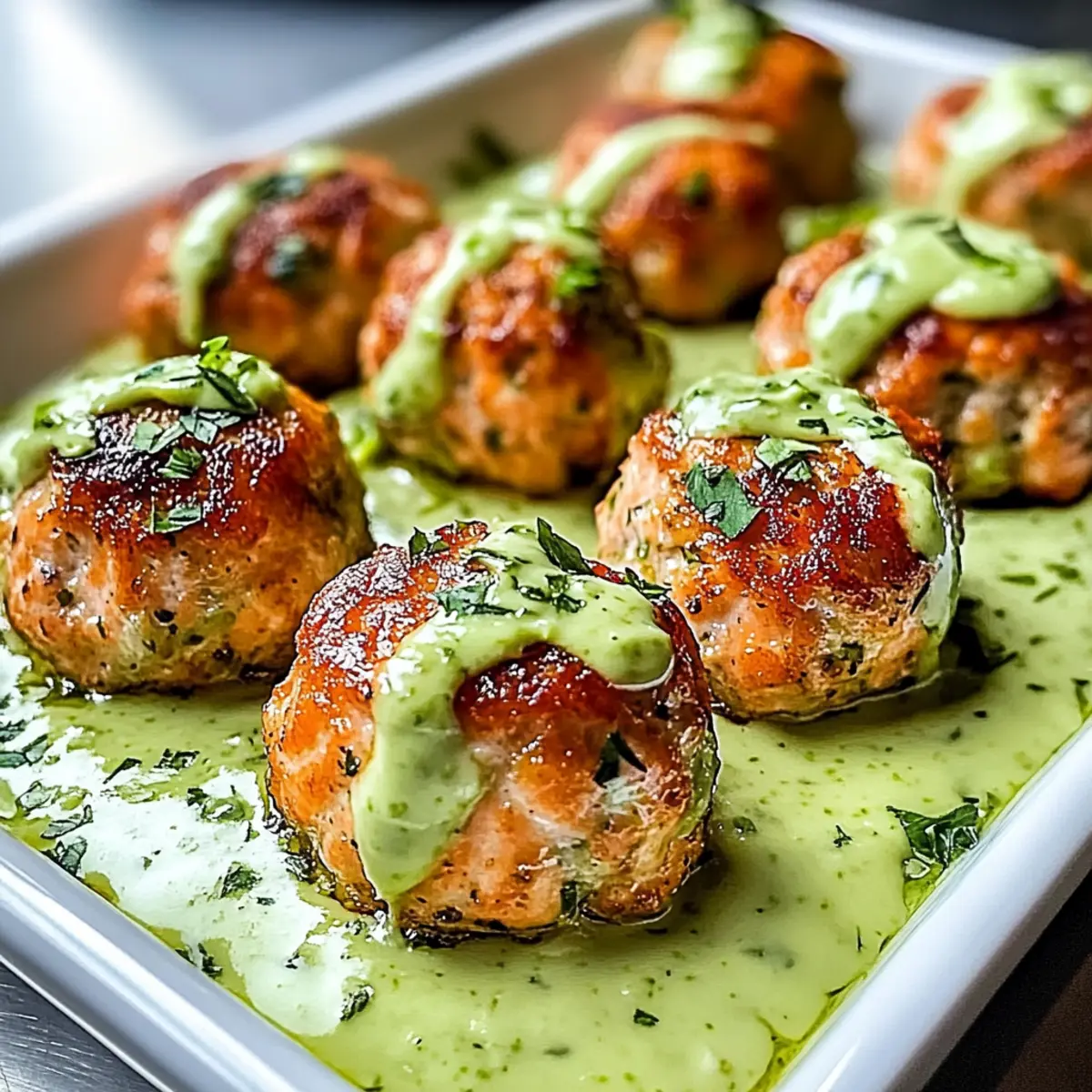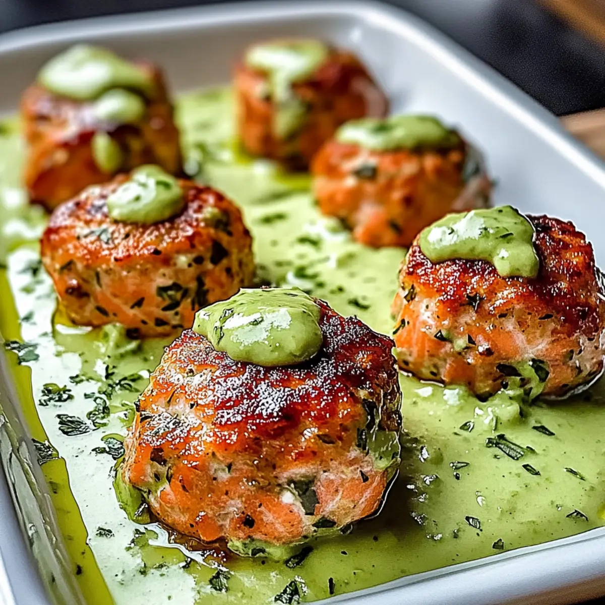Delicious Baked Salmon Meatballs with Creamy Avocado Sauce