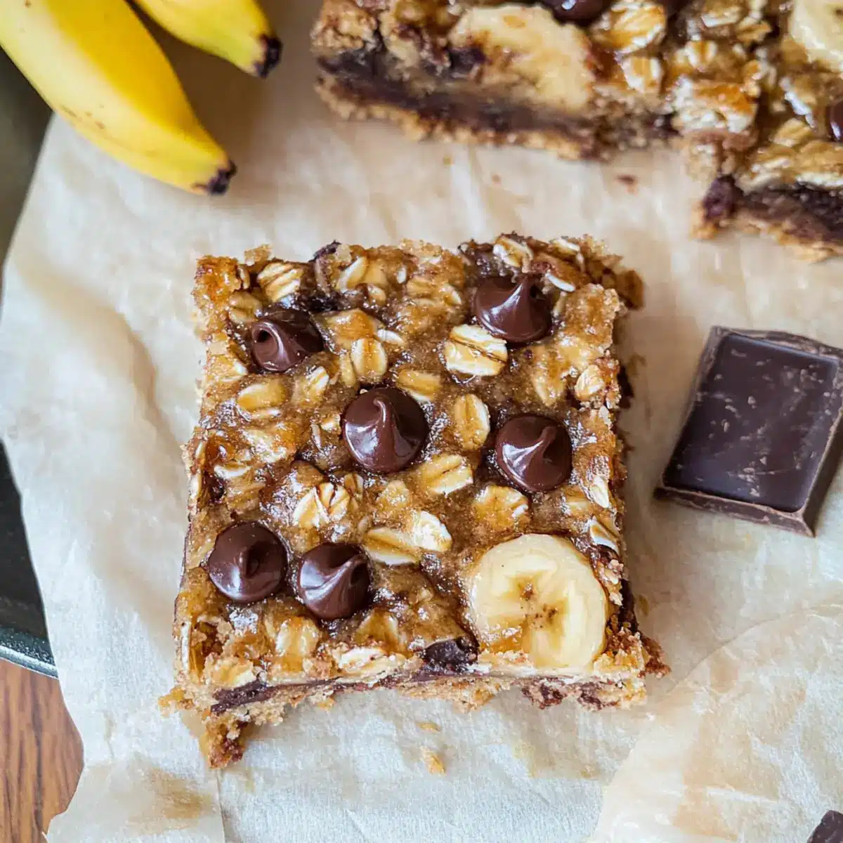 These Banana Oatmeal Bars are ideal for meal prep, saving you time during those busy mornings! You can prepare the wet ingredients (mashed bananas, nut butter, vanilla extract, and maple syrup) up to 24 hours in advance. Just store them in an airtight container in the refrigerator to keep them fresh. The dry ingredients can also be pre-measured and mixed, making it easy to whip up the bars when you’re ready. When you’re set to bake, combine the prepped ingredients, stir in the oats, chocolate chips, and salt, then follow the baking instructions for delicious results, just as fresh as if you made them that day!