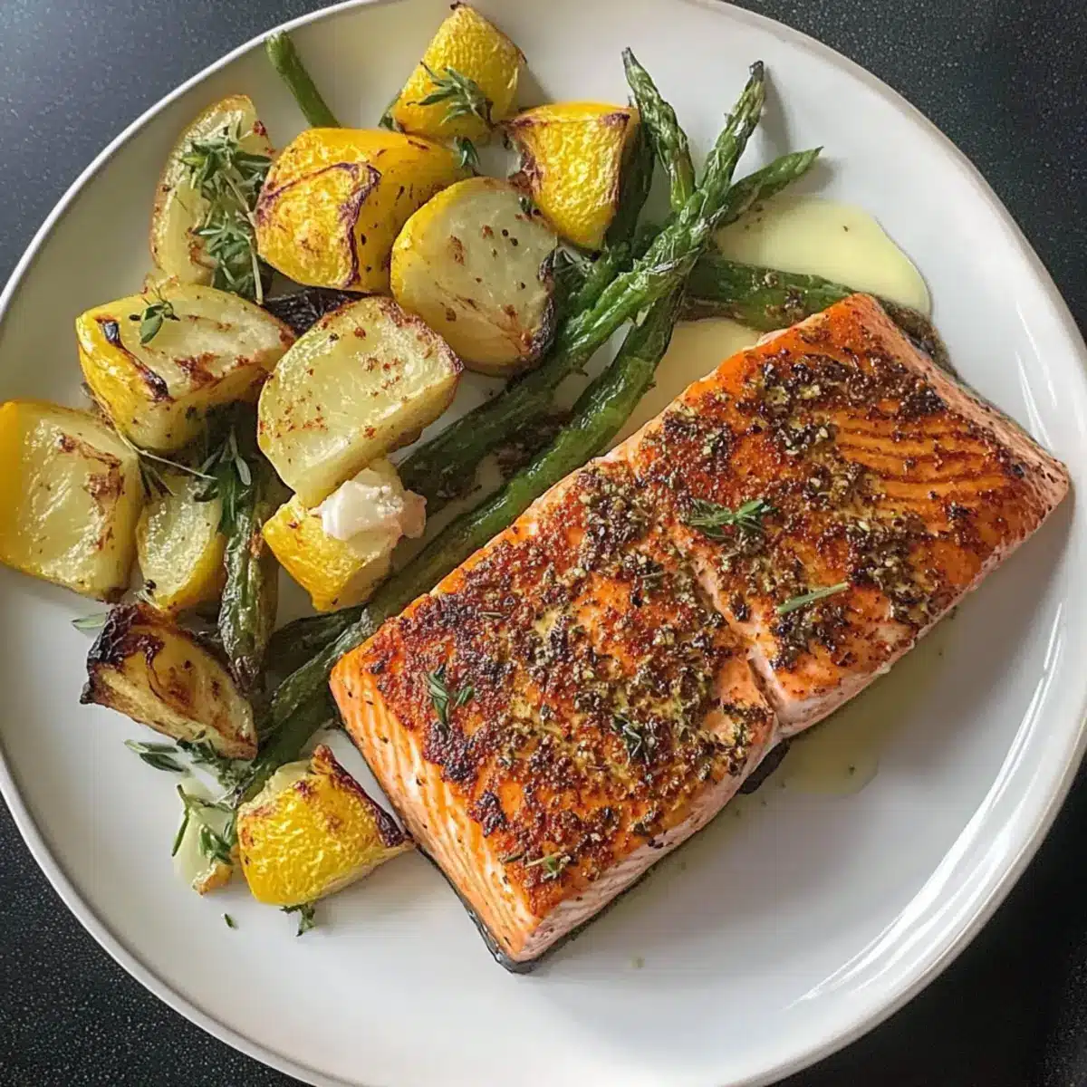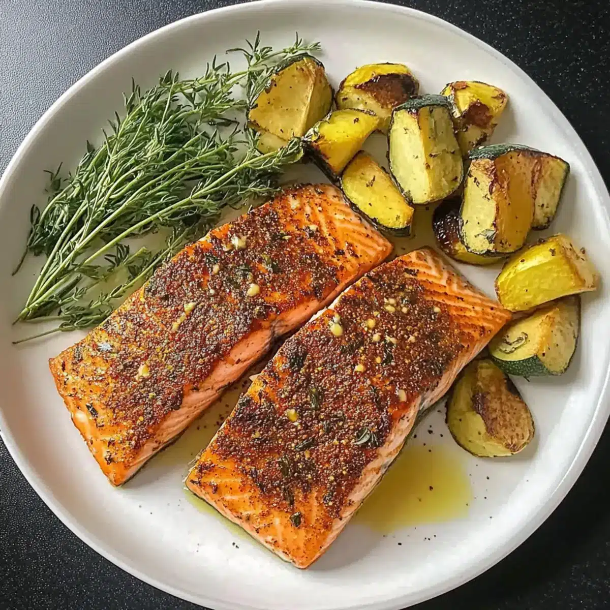 Vegetable Medley: Toss vegetables like zucchini or asparagus on the same baking sheet, roasting alongside the salmon for a complete one-pan meal.