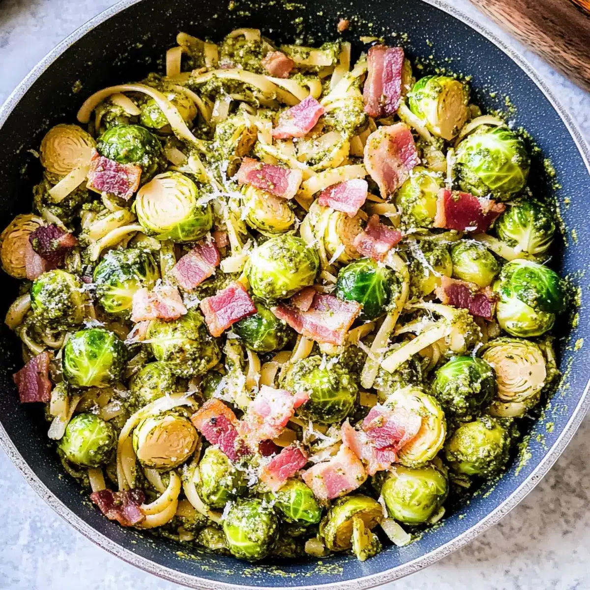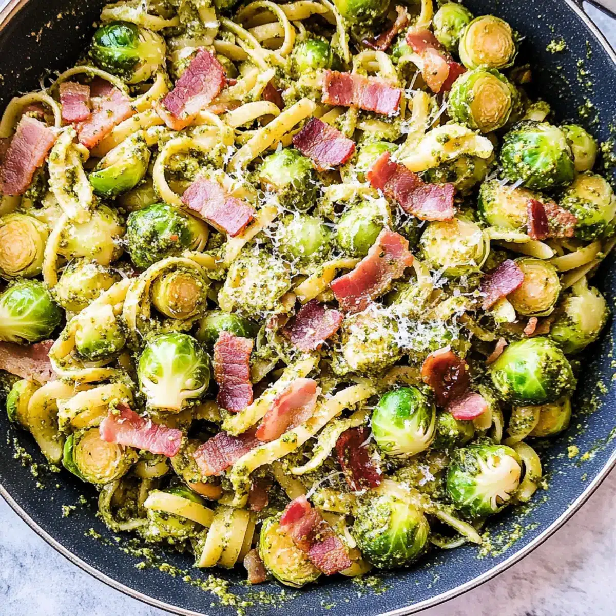 Brussels Sprouts and Bacon Pesto Pasta: Quick & Delicious!