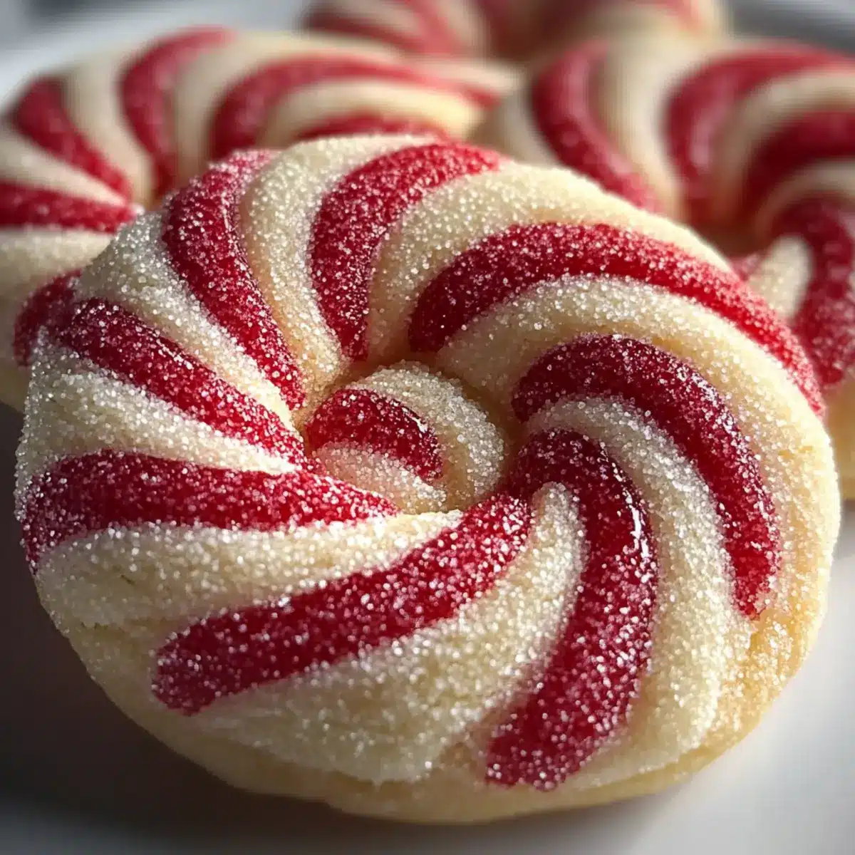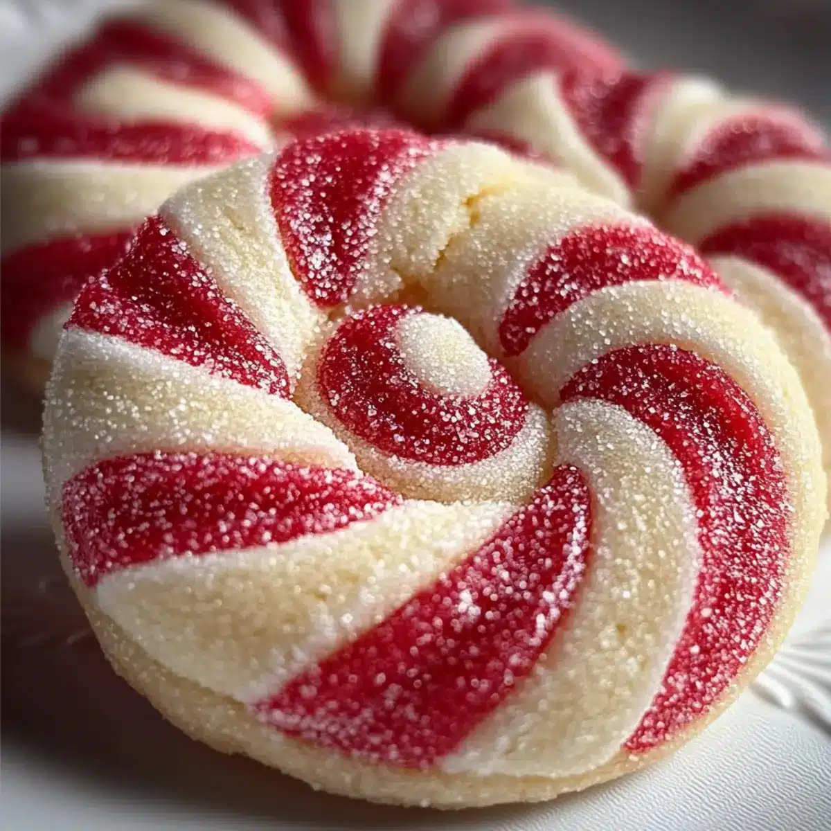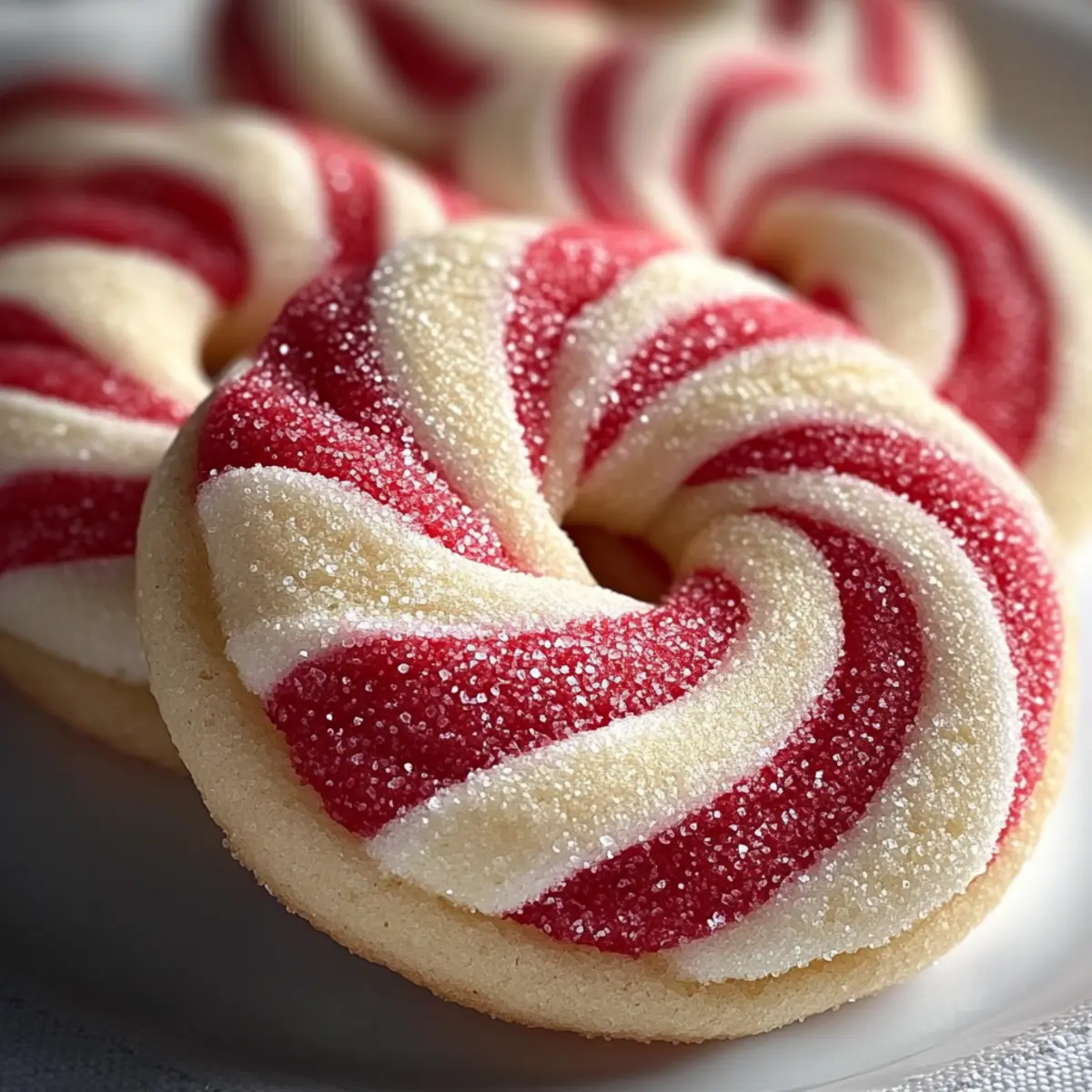 Visual Appeal: Vibrant swirls of red and white not only mimic classic candy canes but also make these cookies perfect for sharing at holiday parties or gifting wrapped in cellophane bags.