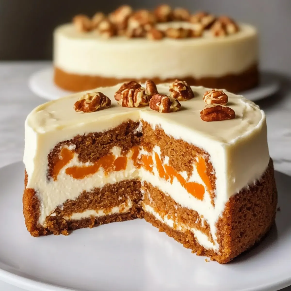 The aroma of freshly grated carrots mingling with fragrant spices fills the kitchen, instantly transporting me to a warm, inviting bakery. This Carrot Cake Cheesecake is a delightful blend that beautifully marries the comforting essence of spiced carrot cake with the luxurious creaminess of a cheesecake. Perfect for both special occasions and casual get-togethers, this indulgent dessert promises to impress friends and family alike. Not only is it a showstopper on any dessert table, but it’s also a great way to elevate your baking game without spending hours in the kitchen. With an enticing flavor profile and a stunning presentation, who wouldn’t be curious to slice into this layered masterpiece? Let’s dive into this deliciously unique recipe!