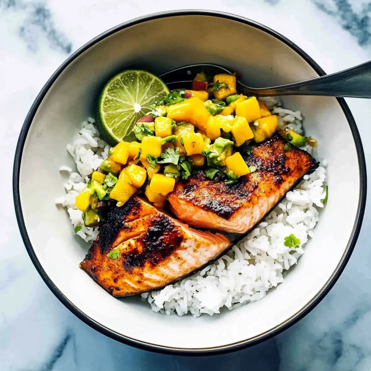 BBQ Salmon Bowls with Mango Avocado Salsa for Fresh Flavor