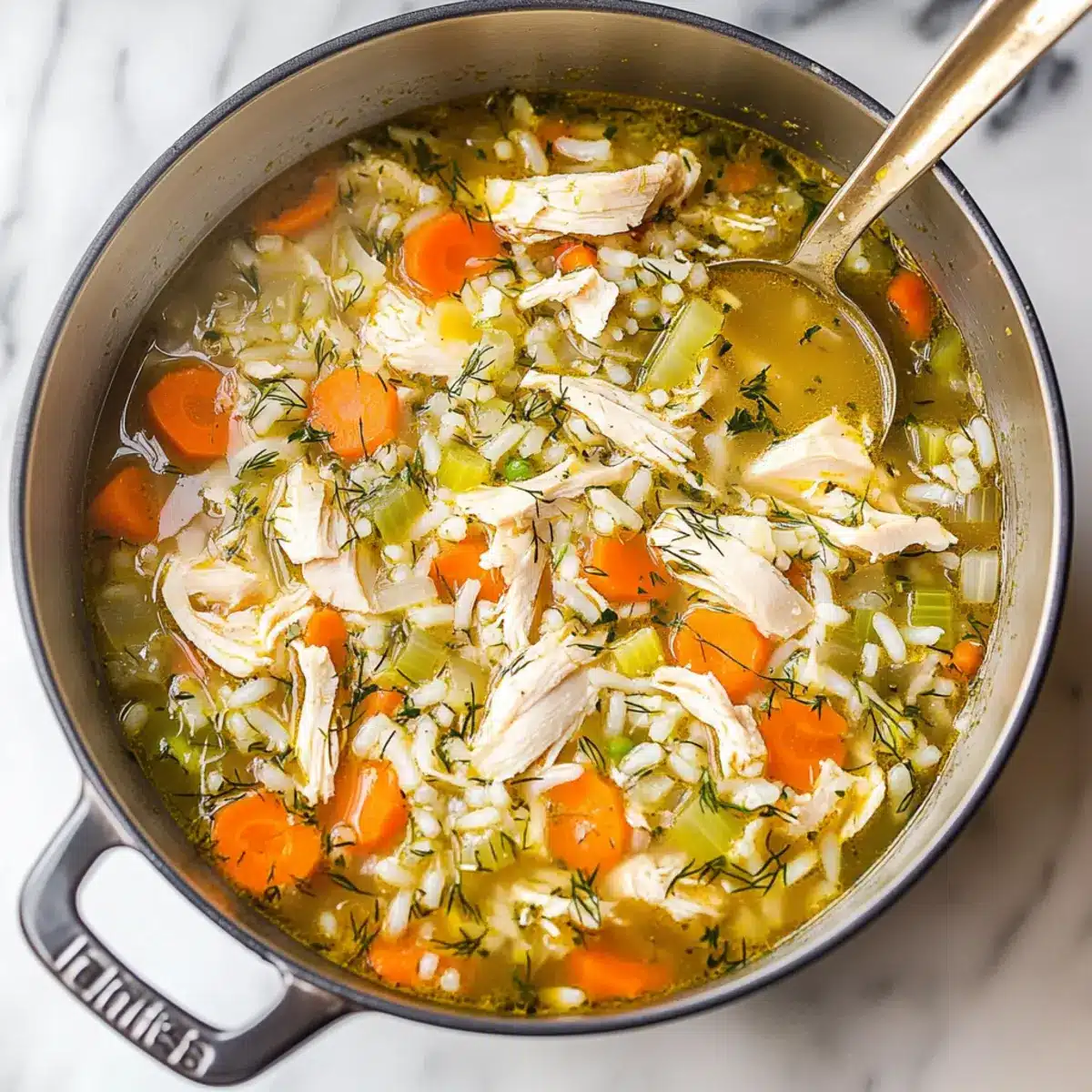 After 30 minutes, stir in the shredded chicken and cooked rice into the pot. Allow the soup to simmer for an additional 5 minutes, just enough for everything to heat through. Finish by stirring in fresh lemon juice and dill for that refreshing brightness. Adjust the seasoning to your liking before serving this cozy Chicken and Rice Soup.