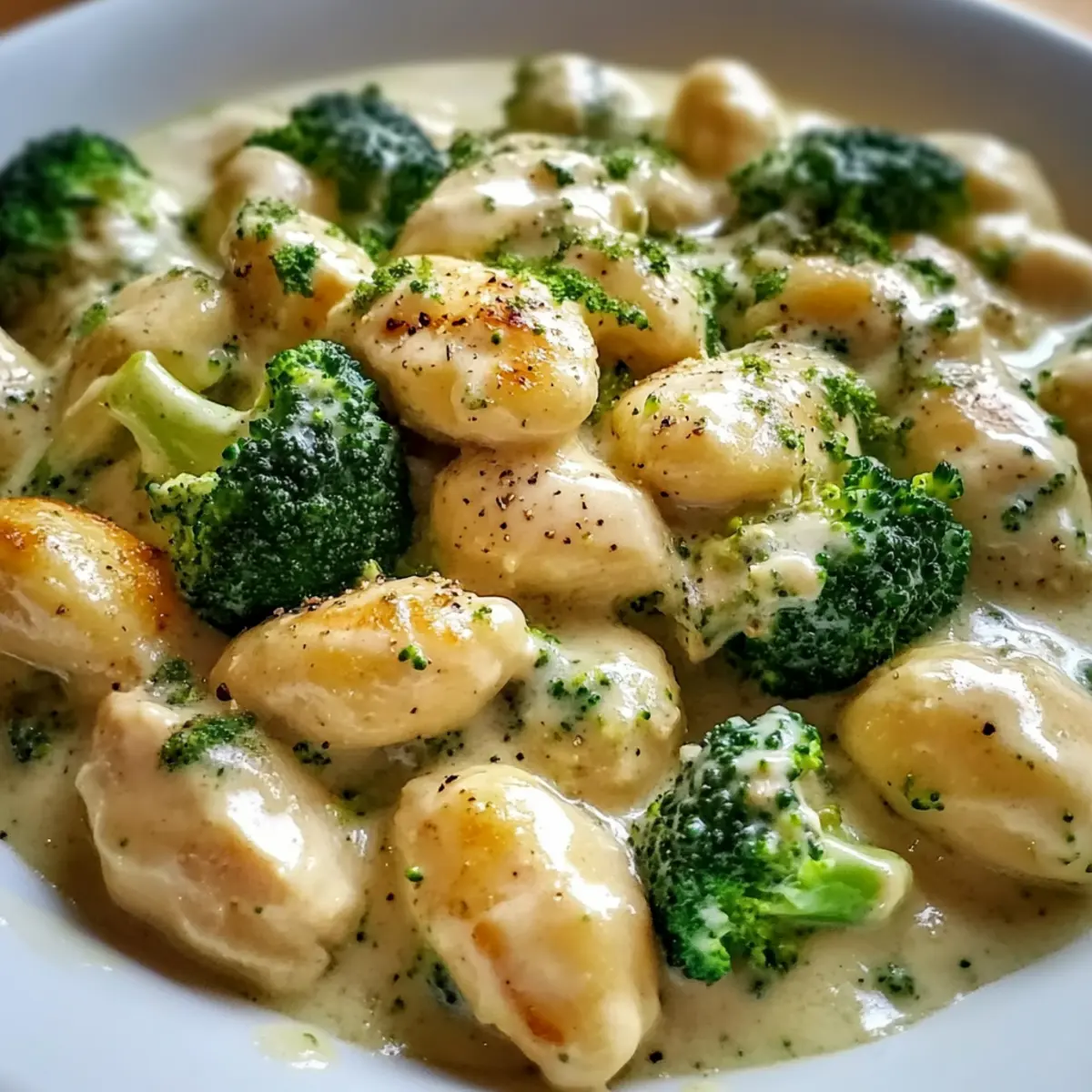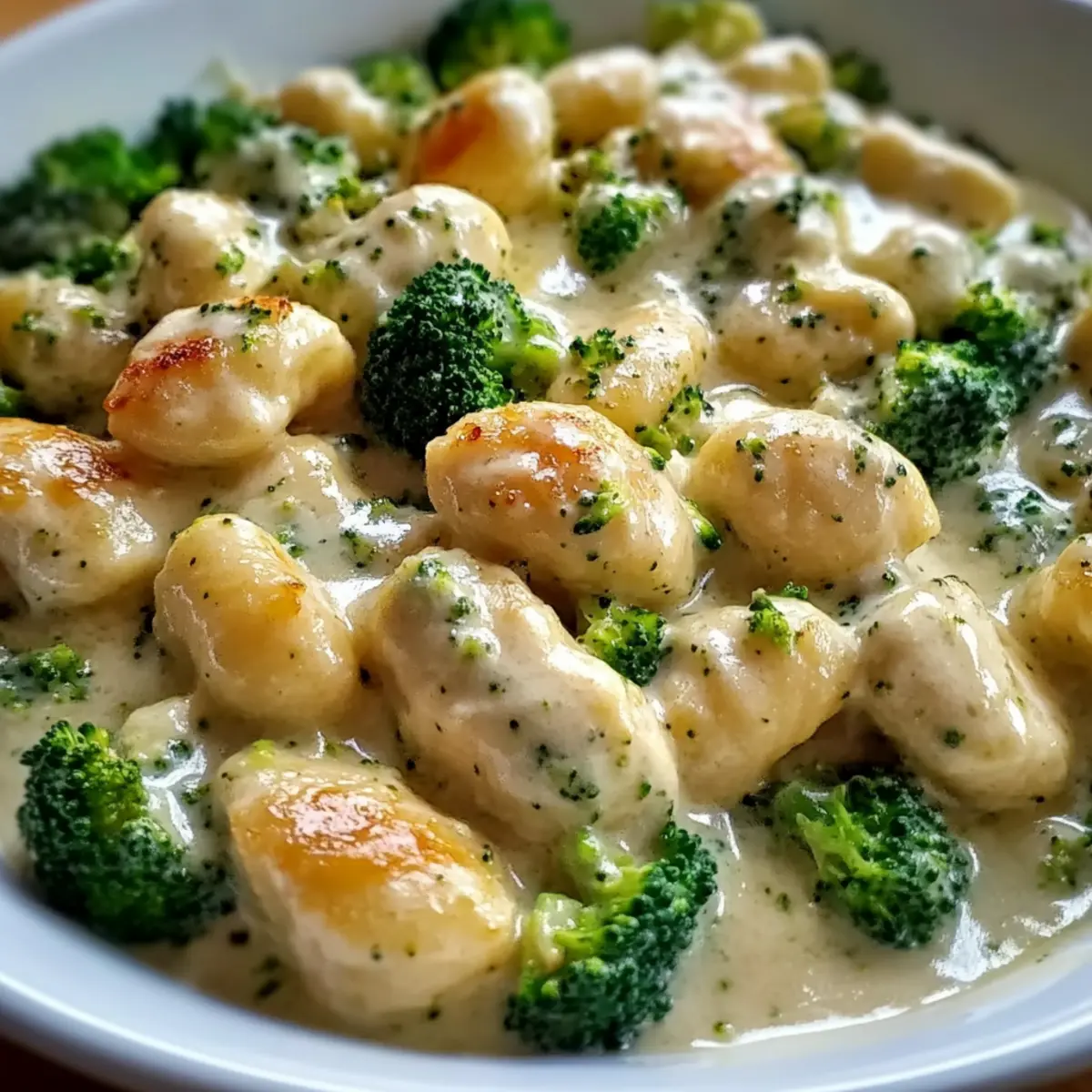 Indulge in a delightful bowl of creamy chicken and broccoli gnocchi, where flavors meet comfort!