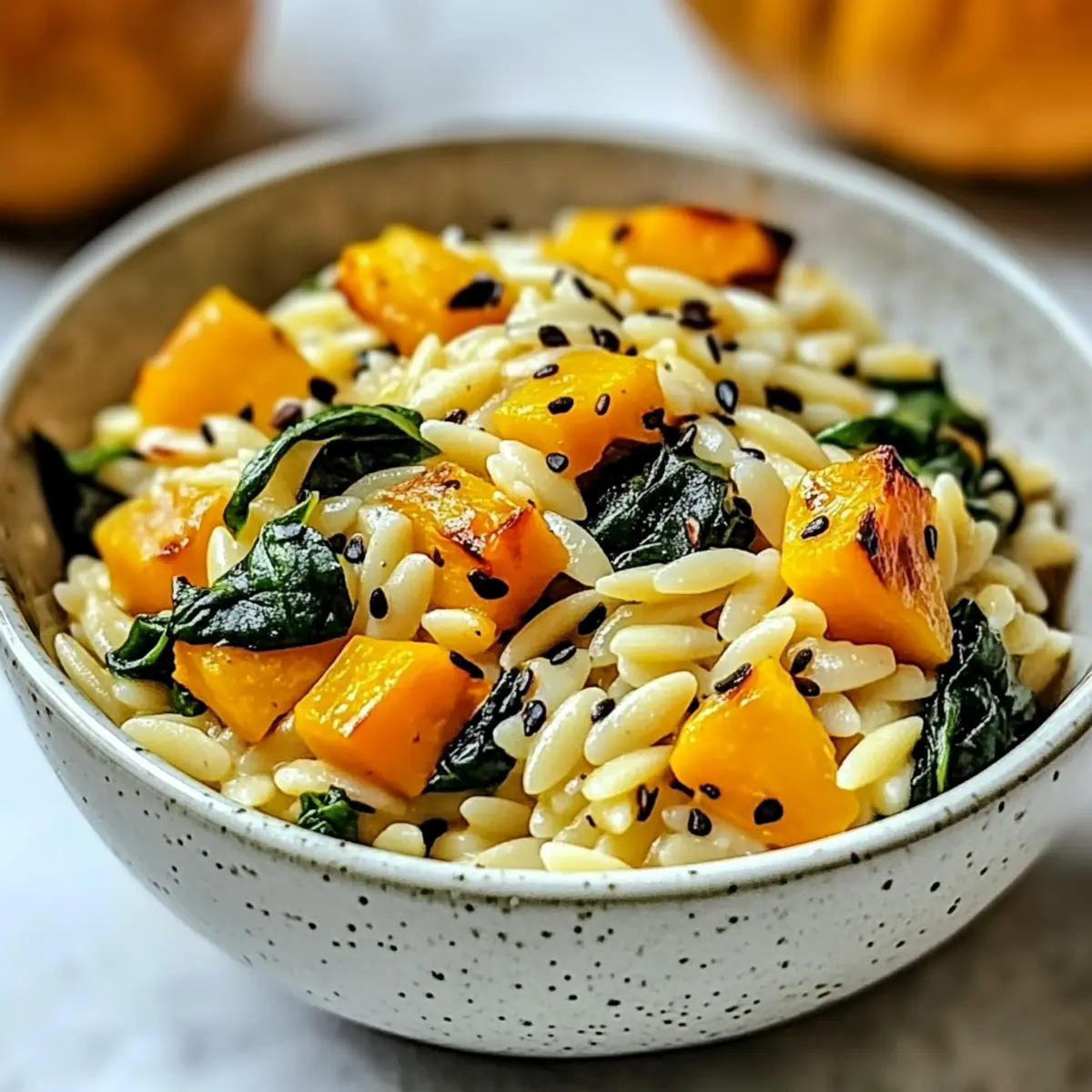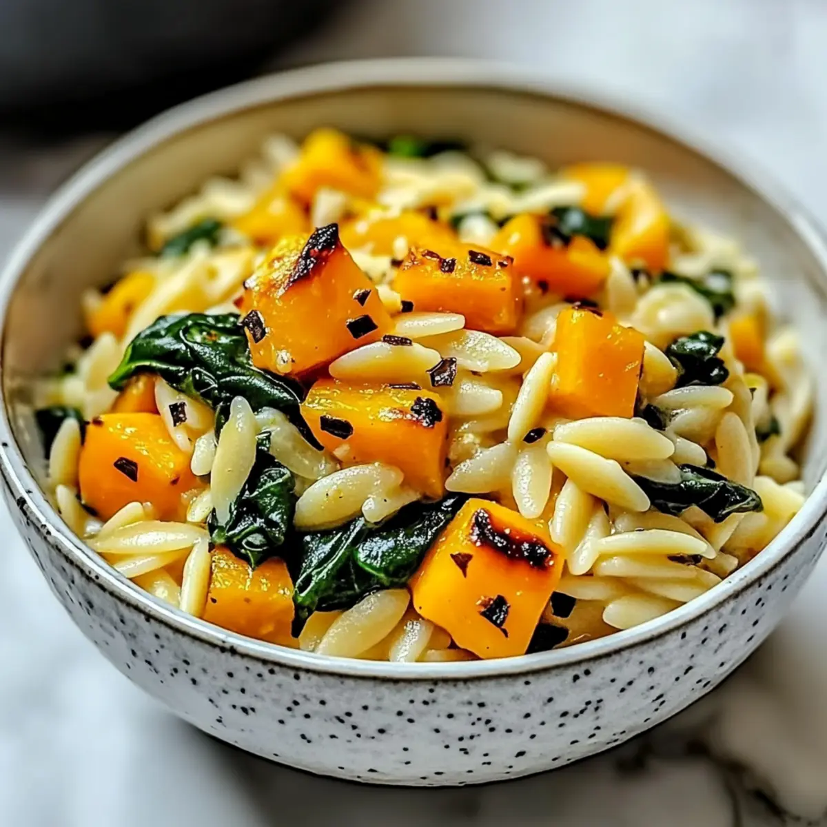 Bring the warmth of Creamy Orzo with Roasted Butternut Squash and Spinach into your kitchen with these simple yet delightful ingredients!