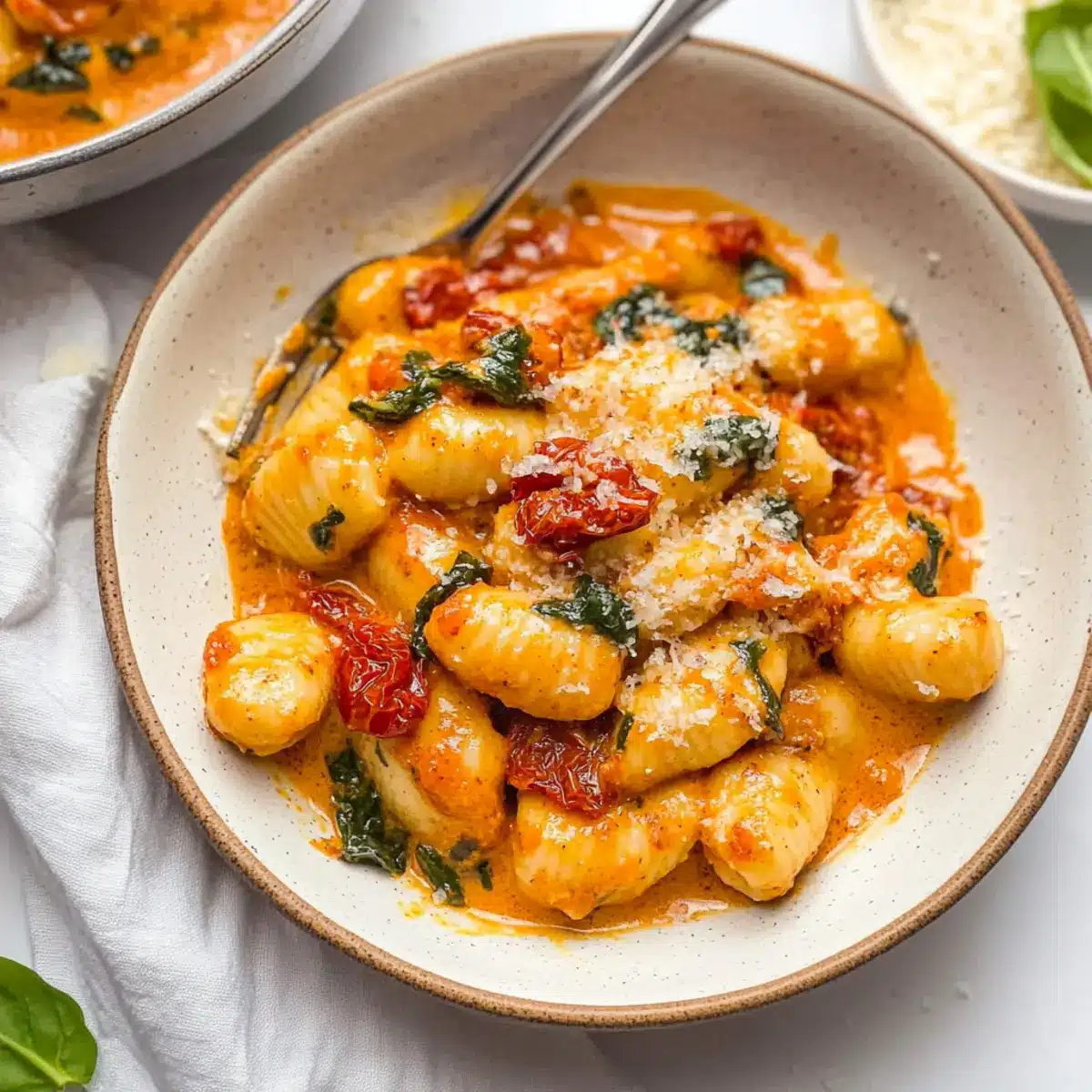 - Serve warm, spooning the creamy sundried tomato gnocchi into bowls.