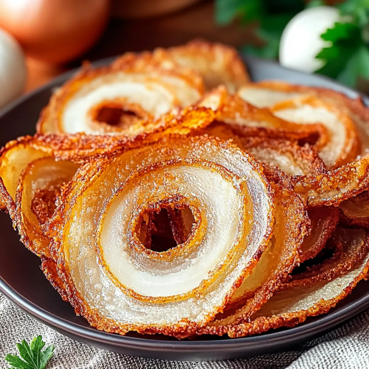 Sweet Touch: For a delightful contrast, drizzle balsamic glaze over the finished chips. The sweetness pairs beautifully with the savory onion flavor, making each bite a unique experience.