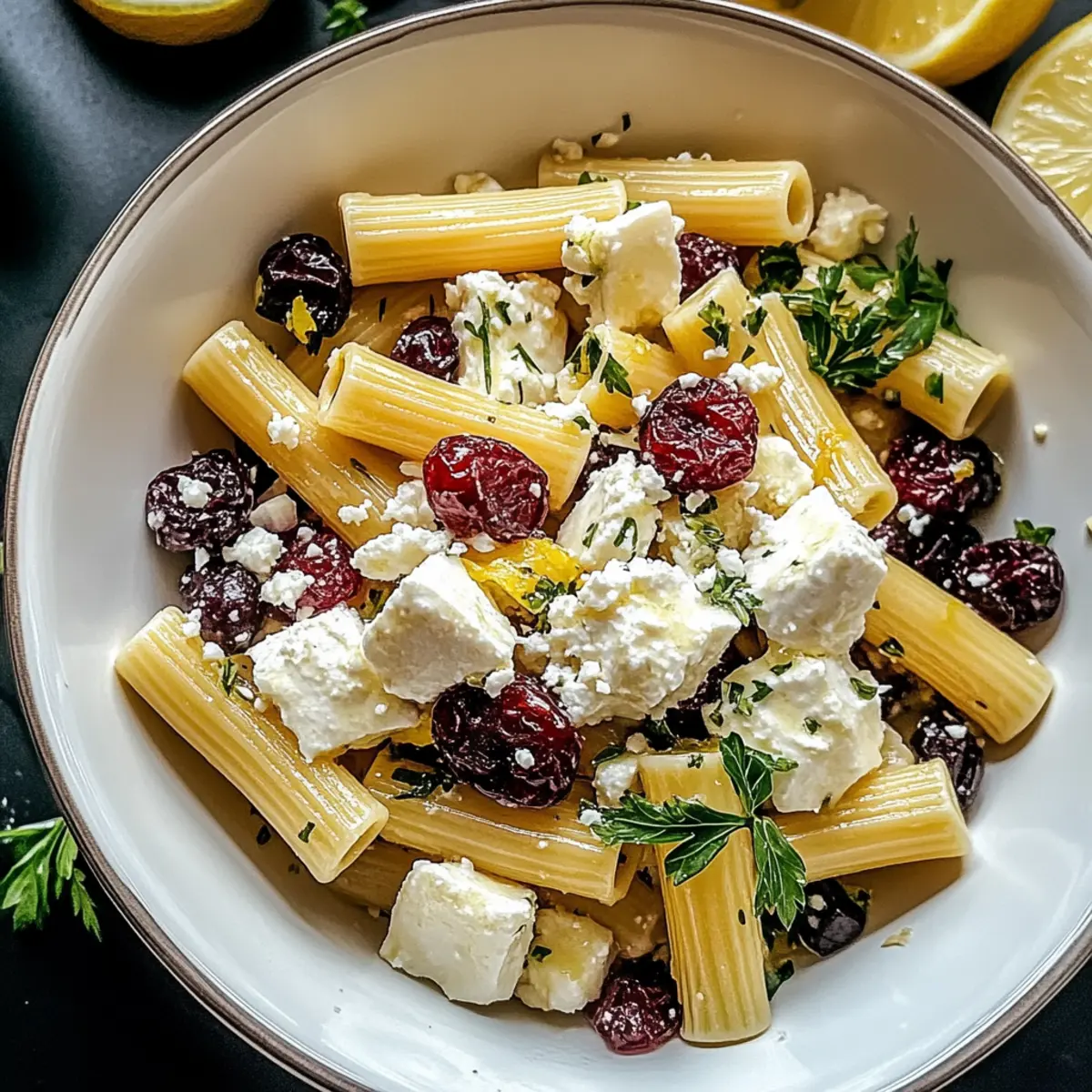 As I unearthed my favorite summer cookbook, I stumbled upon a recipe that instantly transported me to breezy backyard BBQs and sun-drenched picnics: the Feta & Cranberry Rigatoni Salad with Zesty Lemon Vinaigrette. This dish beautifully harmonizes creamy feta with the sweetness of cranberries, all while the chewy rigatoni pasta soaks in the vibrant lemon dressing. It’s a remarkable blend of flavor and texture, making it perfect for light lunches or served as a delightful side at gatherings. Not only is this salad a visual feast, but it also delivers big on taste without taking up hours in the kitchen. Curious how to whip up this refreshing salad that’s sure to impress? Let’s dive in!