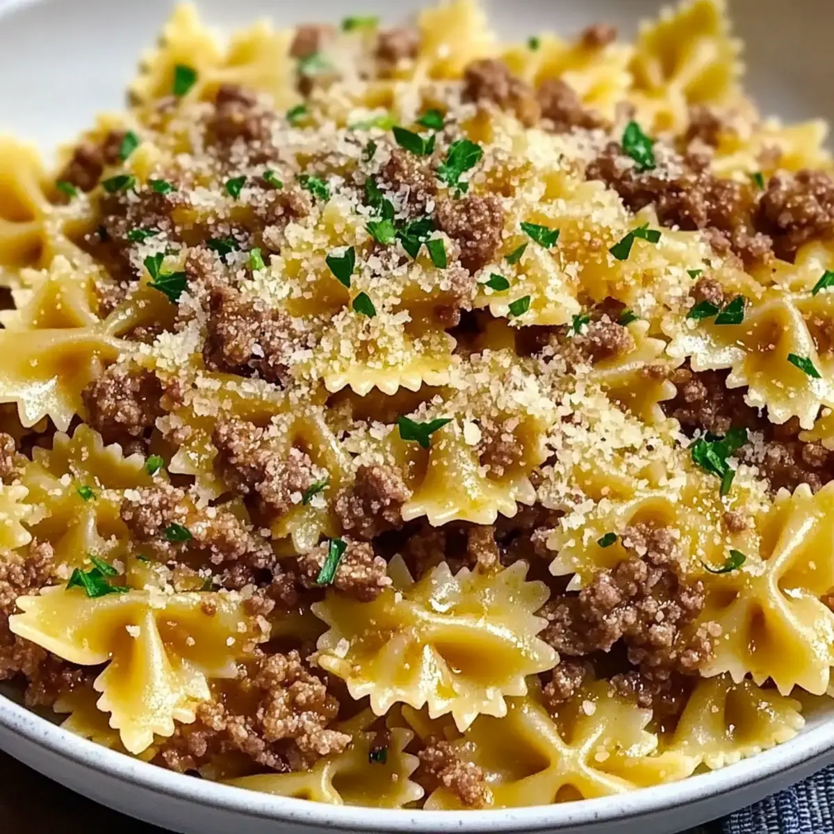 Garlic Butter Bowtie Pasta with Ground Beef for Quick Comfort