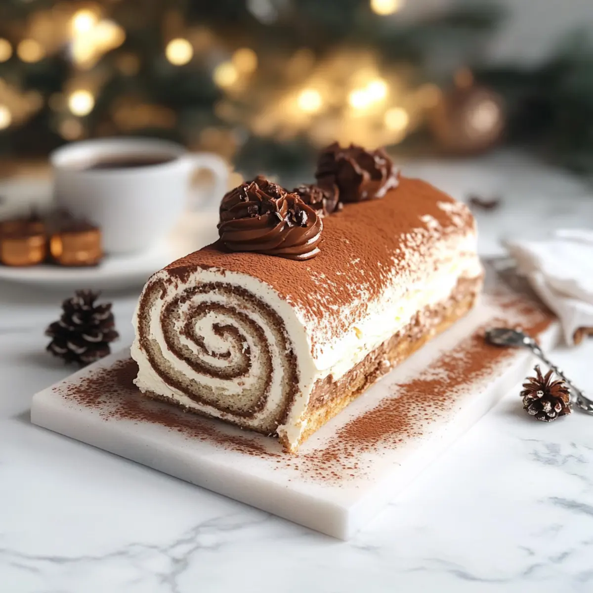 Gourmet Tiramisu Yule Log Cake for Effortless Holiday Indulgence