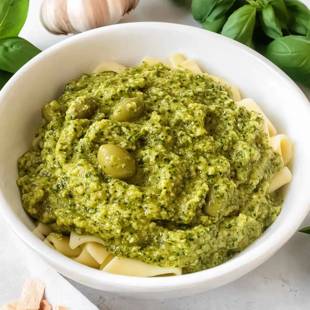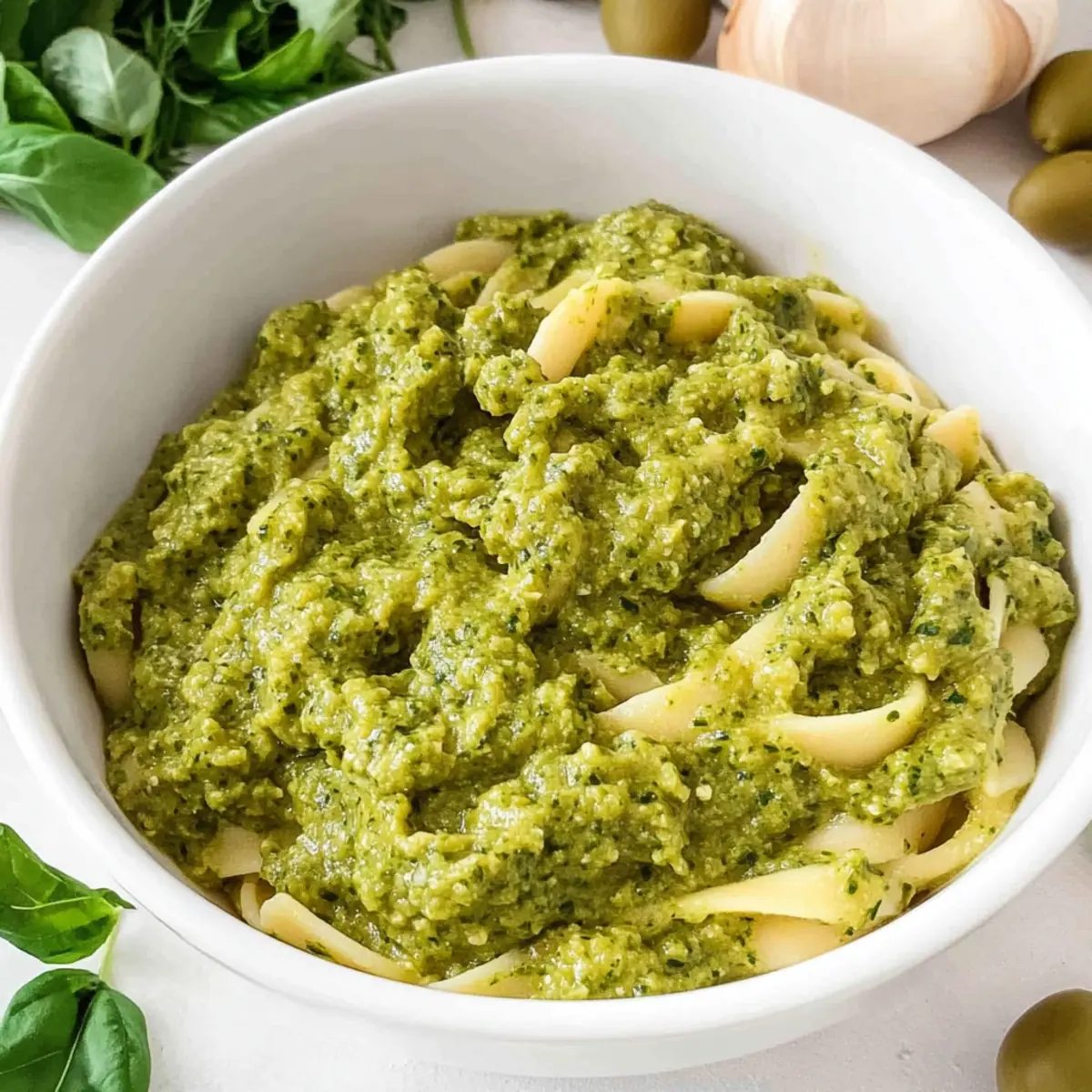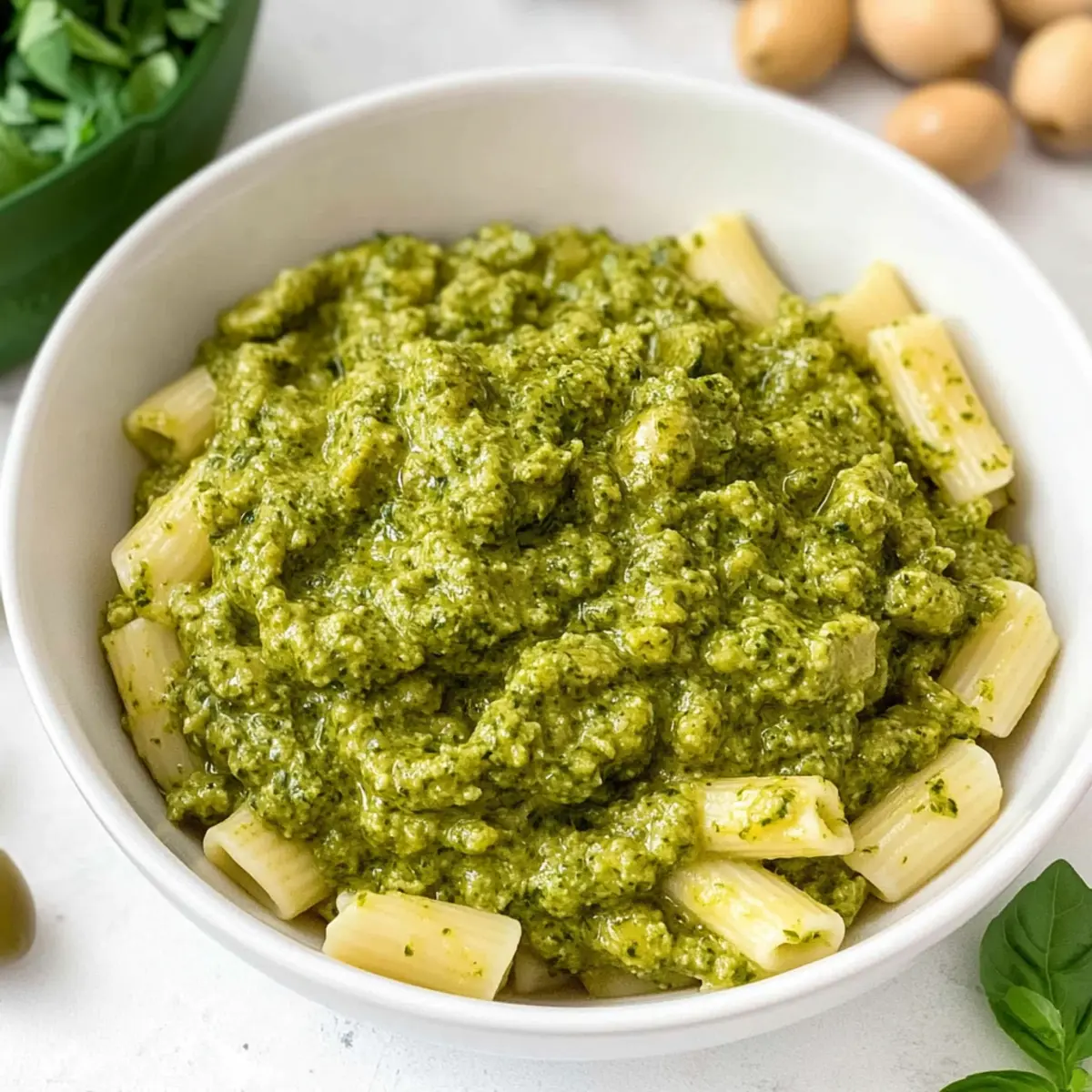 “While rummaging through my pantry the other day, I stumbled upon a jar of Castelvetrano olives. Just like that, I knew I had to whip up a batch of my 5-Minute Green Olive Pasta Sauce! This vibrant, herby delight is not only a fantastic way to elevate any pasta dish but also doubles beautifully as a spread or dip. The richness of these buttery olives, combined with fresh herbs, creates a flavor explosion that will impress both family and guests alike. Plus, it boasts a quick prep time—perfect for those busy weeknights when you crave homemade goodness without the fuss. Ready to find out how to bring this Mediterranean treasure to your dinner table? Let’s dive in!”