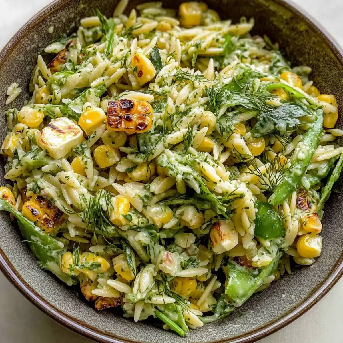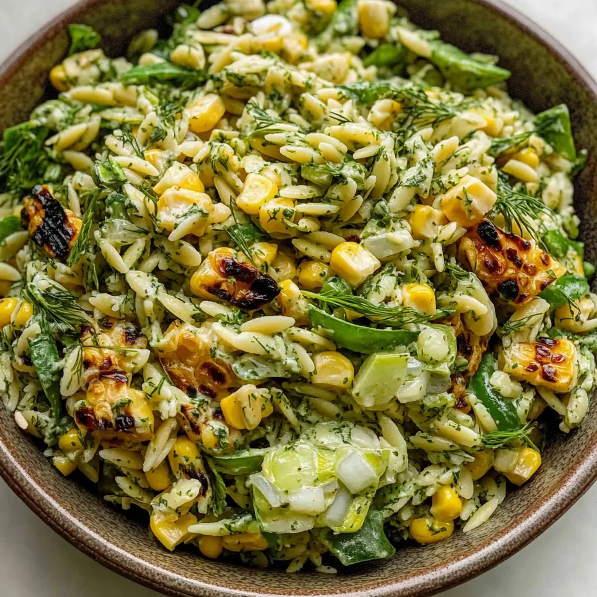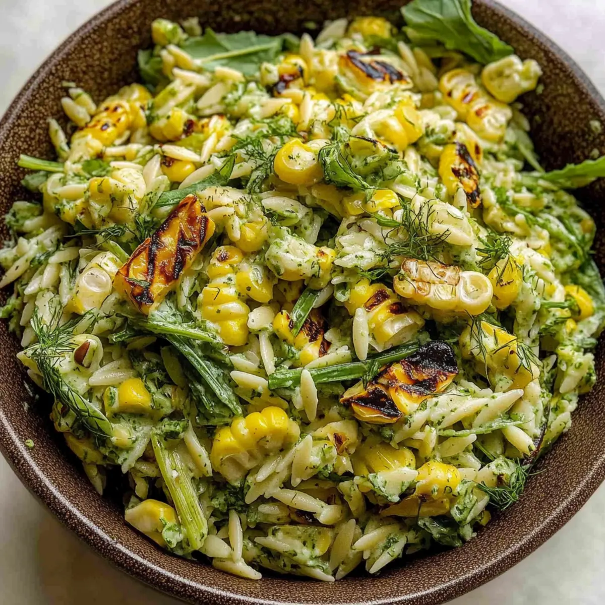 Grilled Corn Orzo Salad with Scallion Dill Dressing Delight