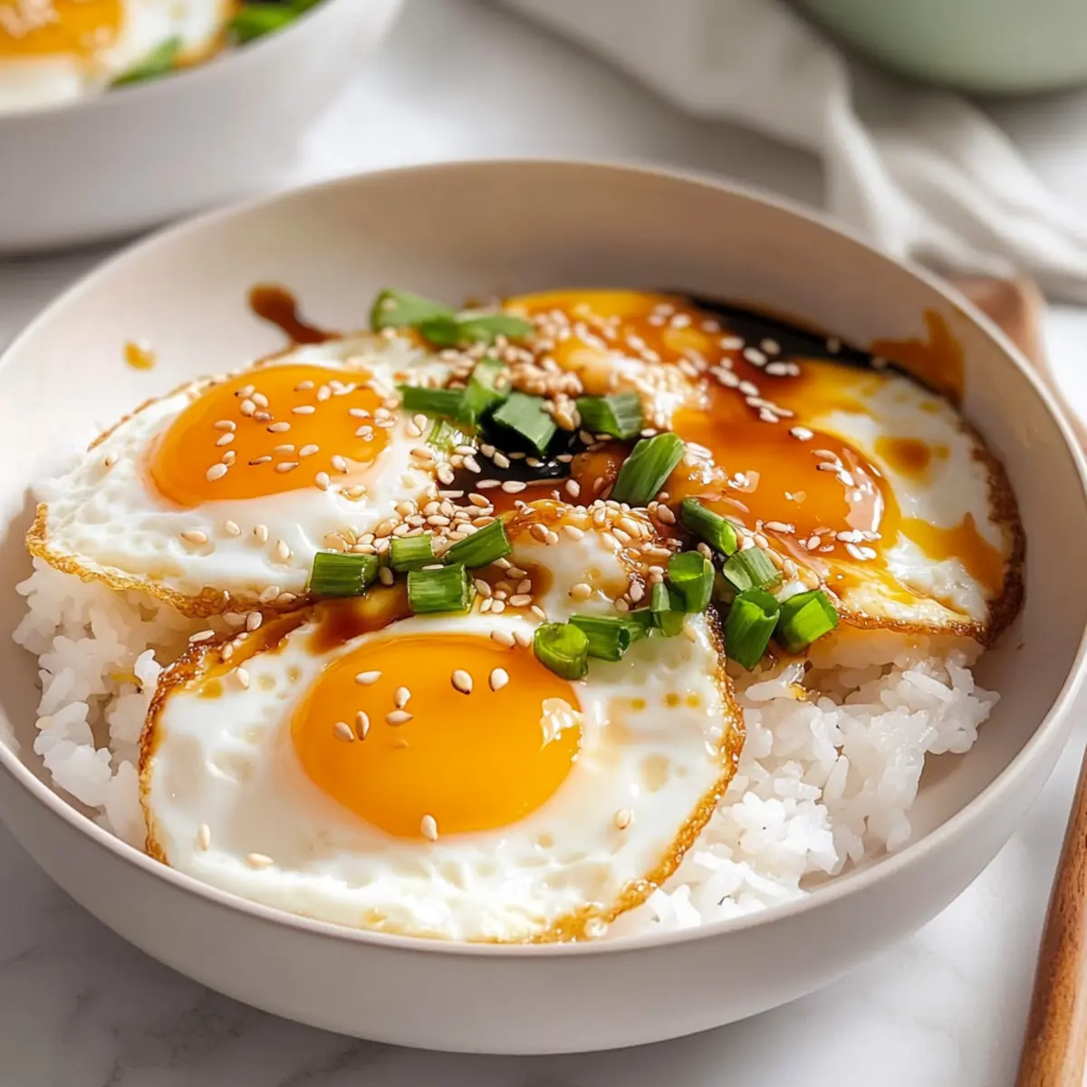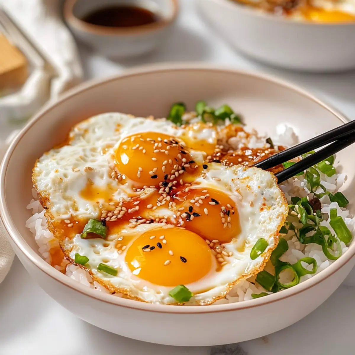Sprinkle freshly chopped green onions and toasted sesame seeds over the dish for a burst of color and crunch. If desired, mix in the runny egg yolks into the rice for extra creaminess. Serve with optional sides like kimchi and seaweed snacks for an authentic touch, making your Korean Egg Rice not only delicious but visually stunning as well!