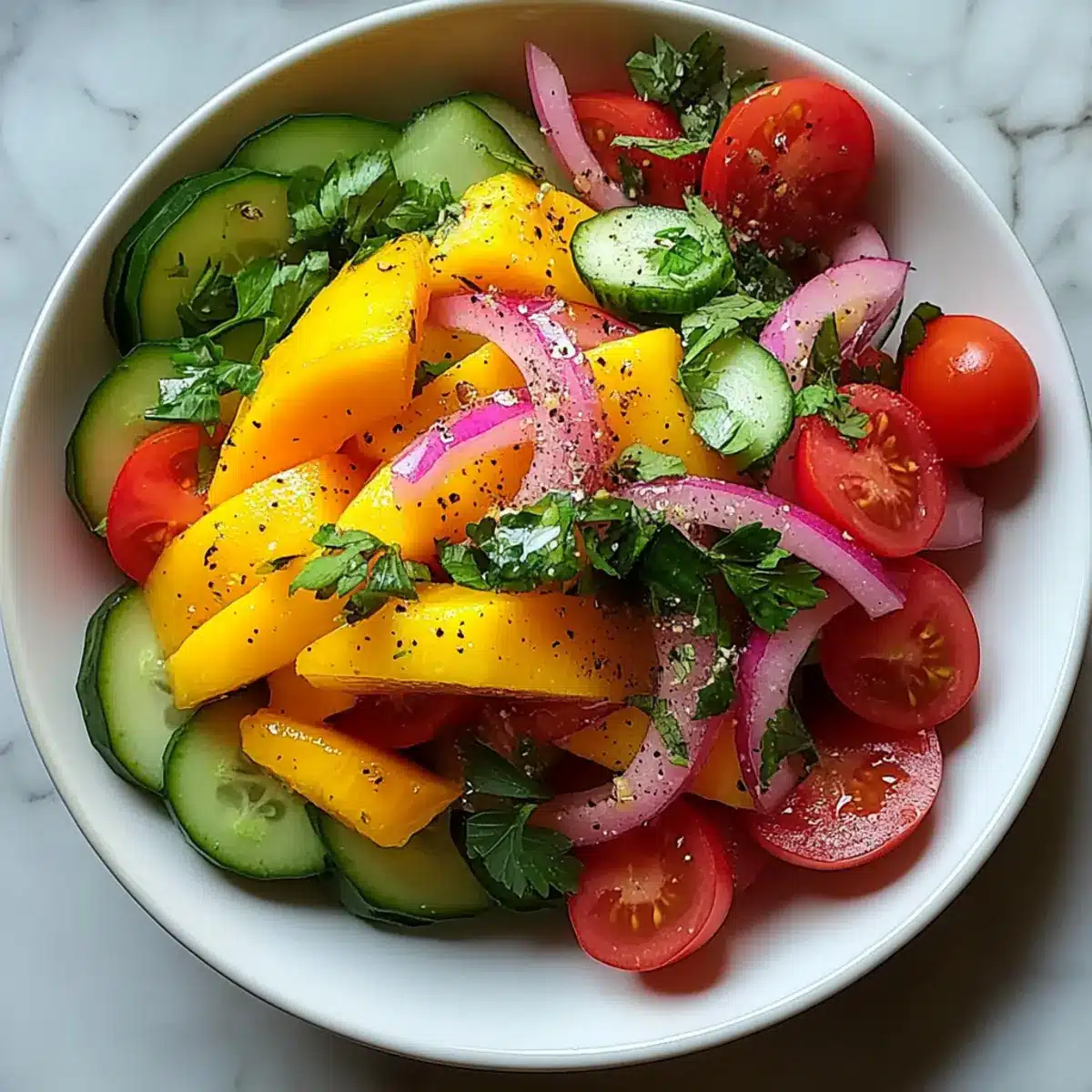 Vibrant Flavors: The combination of juicy mango, crisp cucumbers, and zesty lime creates an explosion of refreshing taste in every bite—perfect for summer dining!