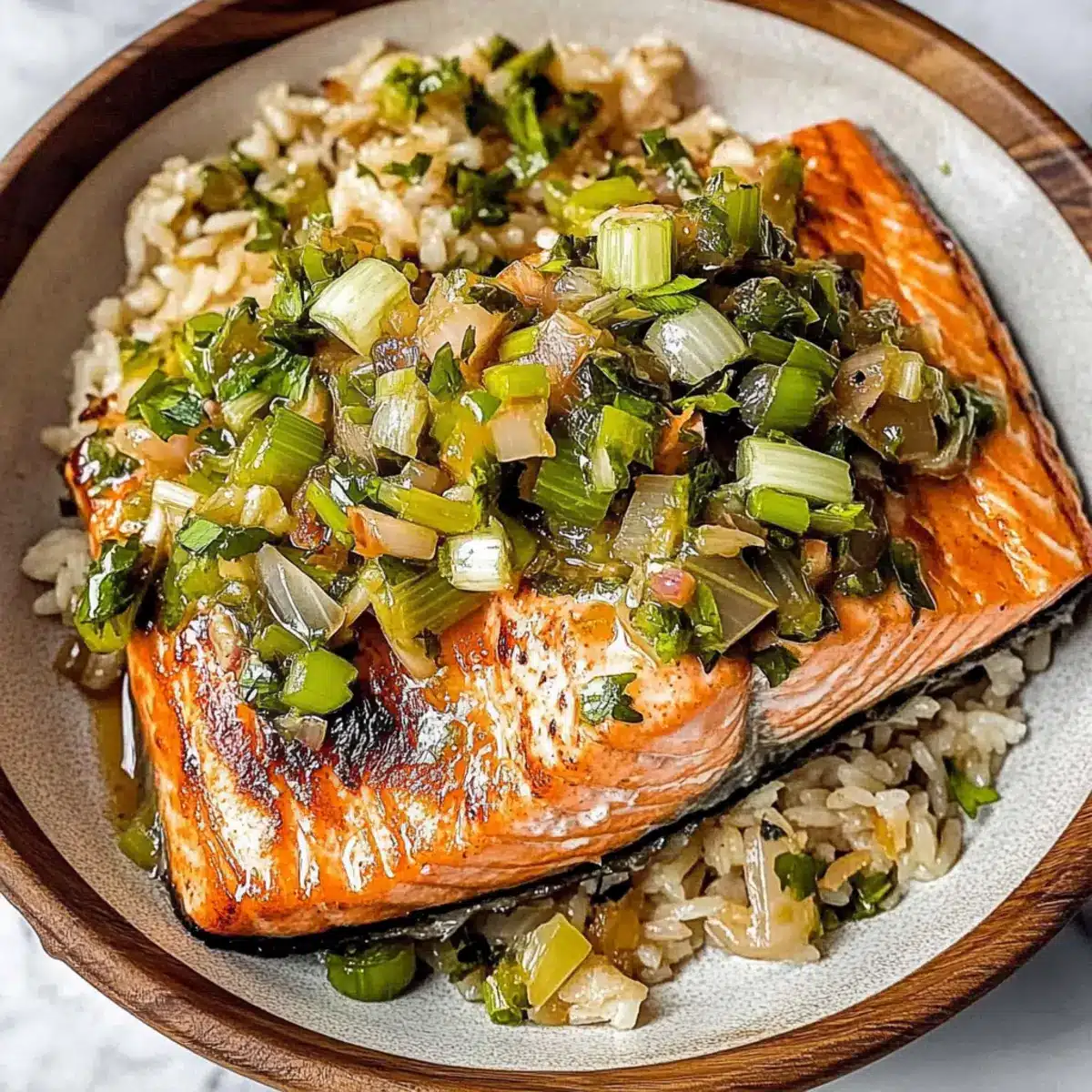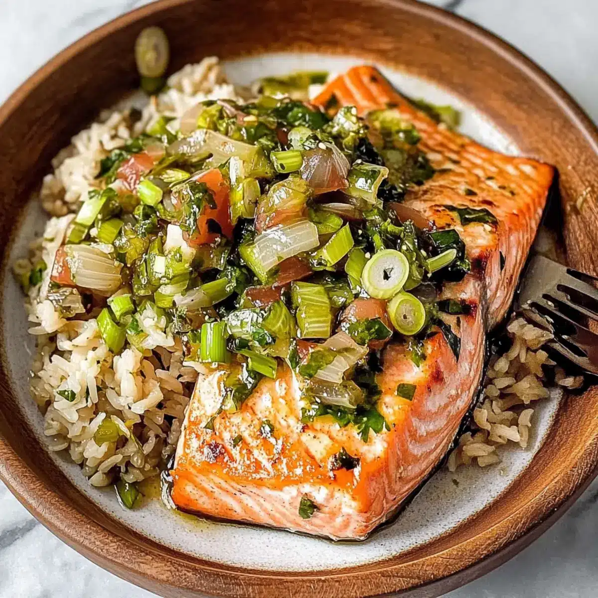Miso Butter Salmon with Sizzled Scallion Salsa Verde Bliss