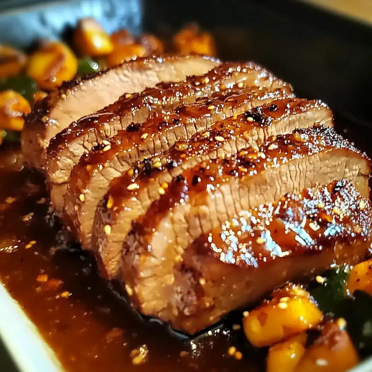 - Let the pork rest for 10 minutes before slicing and serving with remaining sauce.