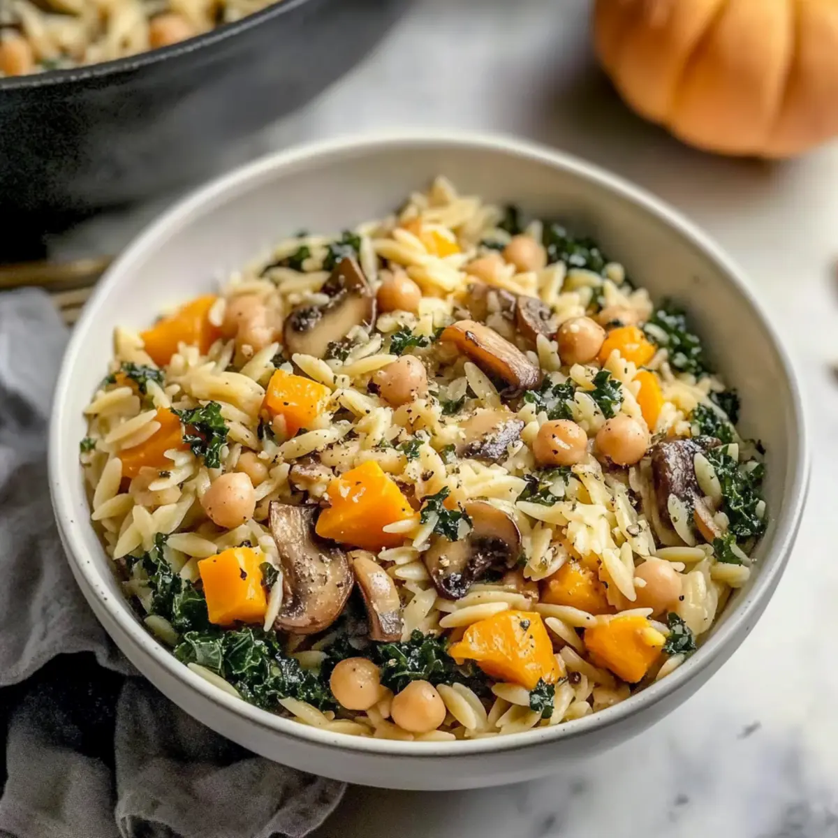 Convenience is at the heart of this recipe! With everything cooked in a single pot, you save time on both cooking and cleaning, allowing you to enjoy more moments with family and friends. Flavor-packed ingredients like sweet butternut squash and earthy mushrooms meld together beautifully, creating a dish that’s just as comforting as a hug in a bowl. Nutritionally rich, this One Pot Fall Vegetable Orzo and Chickpeas provides a bounty of vitamins and plant-based protein, aligning perfectly with vegetarian diets. Looking for more one-pot magic? Try One Pot Lasagna for a hearty twist or whip up a comforting Potsticker Soup for a cozy night in. With so much to love about this dish, you’ll be welcoming the flavors of fall with open arms!