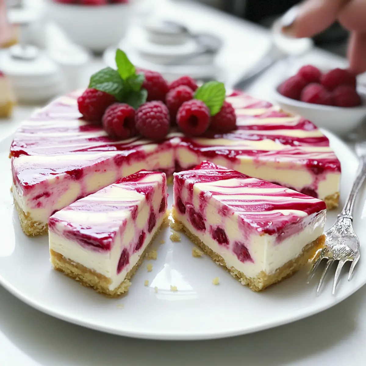 Choose Fresh Raspberries: Using fresh raspberries enhances the flavor and texture of your cheesecake; opt for ripe ones for the best taste.