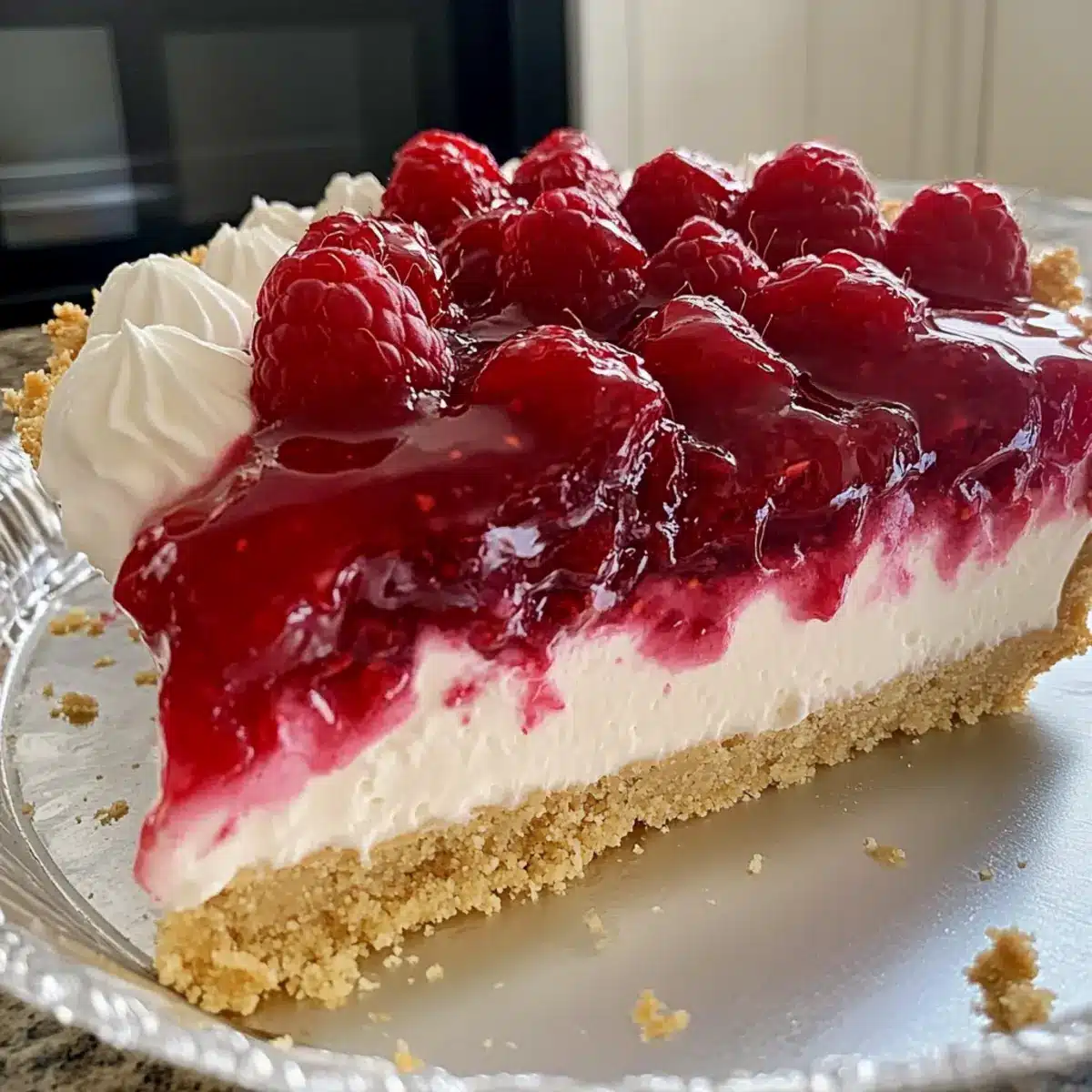 - Slice the pie and garnish with whipped cream and fresh raspberries for an elegant touch.
