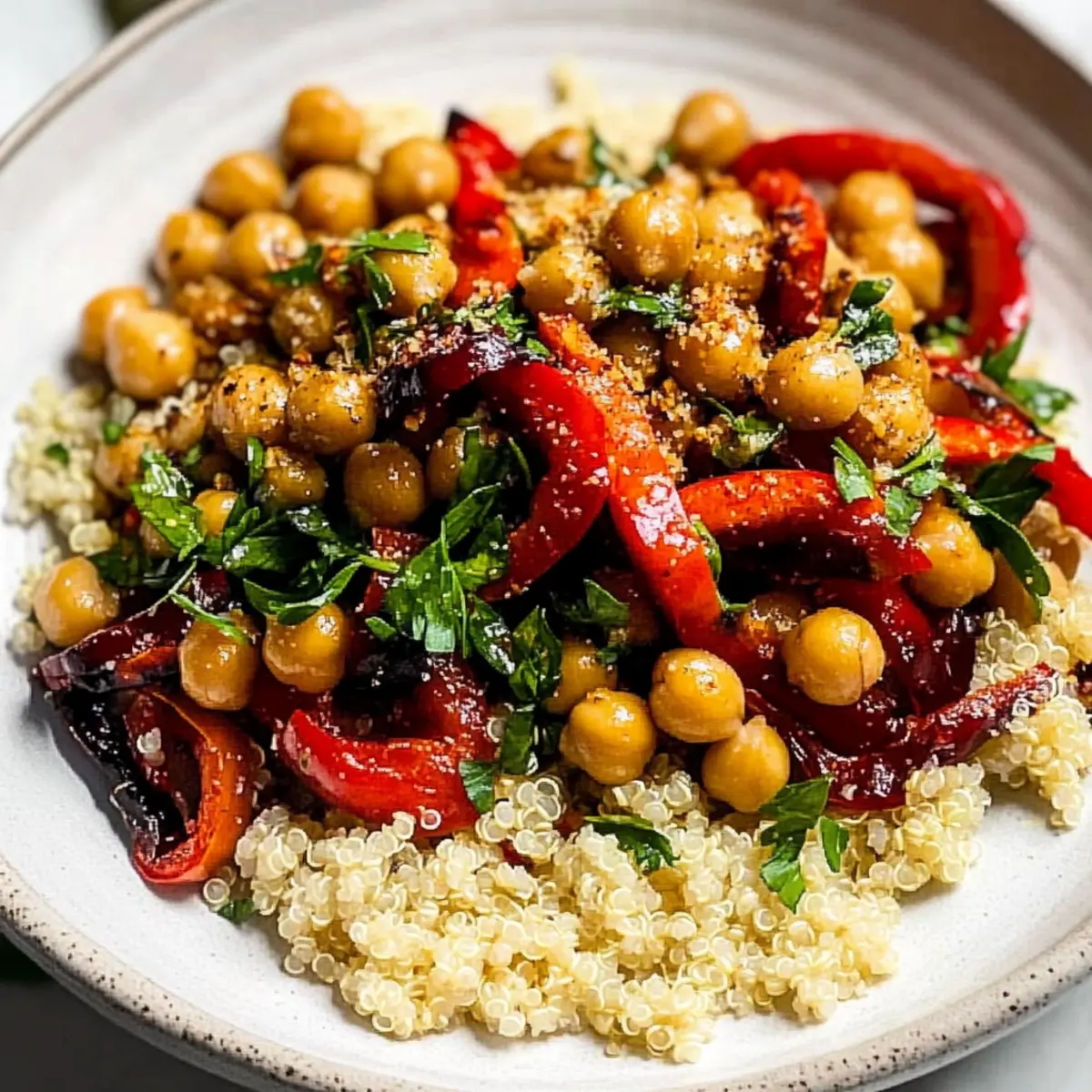 It was a chilly evening when I stumbled upon the idea for this Roasted Red Pepper Salad. The moment I pulled the warm, sweet aroma of the roasted peppers from the oven, I knew I had to share it with you. This hearty salad is not only a feast for the senses but also packed with an impressive 25g of plant protein and 20g of fiber per serving—making it a delightful choice for anyone looking to elevate their weeknight dinners. It’s quick to prep and offers a nourishing alternative to fast food, perfect for those cozy nights when you crave something satisfying yet simple. The crispy chickpeas and fluffy quinoa create a balanced texture, while the zesty lemon vinaigrette ties everything together beautifully. Ready to ignite your taste buds and warm your heart? Let’s dive into this cozy dish together!