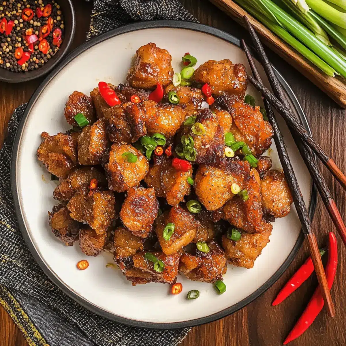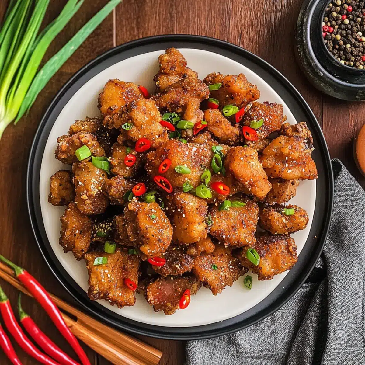 The sizzle of pork in hot oil filled the kitchen, transporting me back to bustling street markets in Asia, where the aroma of sizzling spices mingled in the air. I couldn’t resist the urge to recreate that delightful experience at home, and that’s how I stumbled upon these Crispy Salt & Pepper Pork Chop Bites. With just 30 minutes of cooking time, this recipe is a fantastic solution for those busy weeknights when you crave something special yet manageable. Not only are they gluten-free, making them a versatile addition to any diet, but they’re also sure to impress your family or friends with their crunchy texture and bold flavors. Ready to dive into this easy, scrumptious dish? Let’s get cooking!