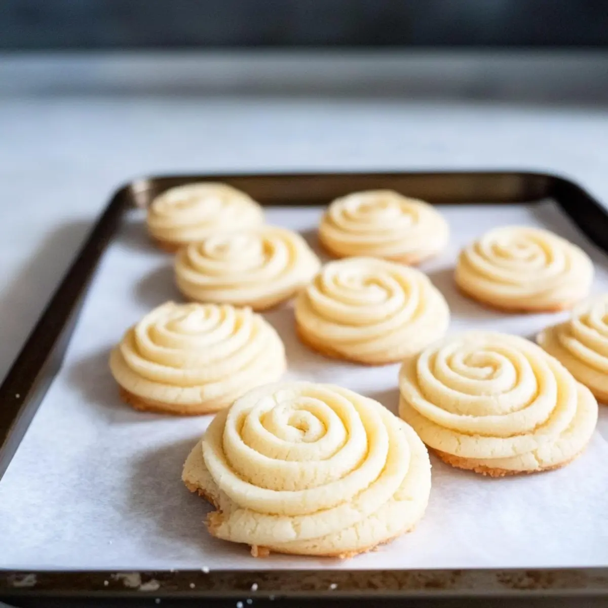 Chilling Dough: If the dough gets too warm while piping, chill it for 15 minutes. This helps maintain the shape of your soft butter cookies.