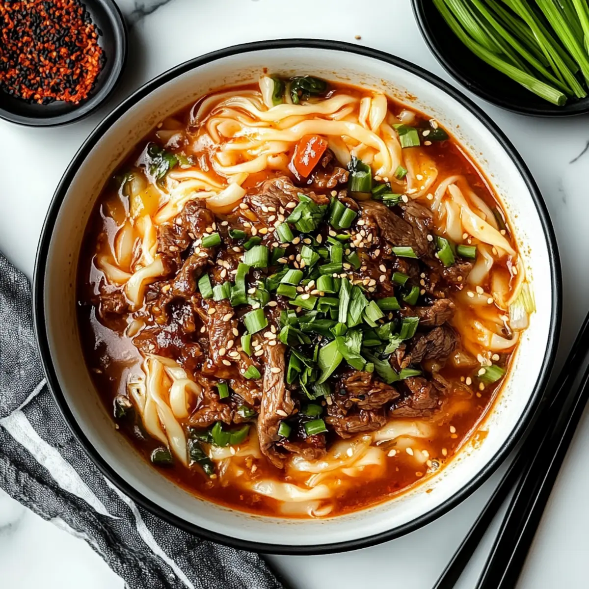 Kimchi: This traditional Korean side dish adds a tangy crunch, complementing the spicy flavors of the beef noodles beautifully. The fermented taste pairs perfectly with the rich, savory sauce, creating an irresistible contrast.