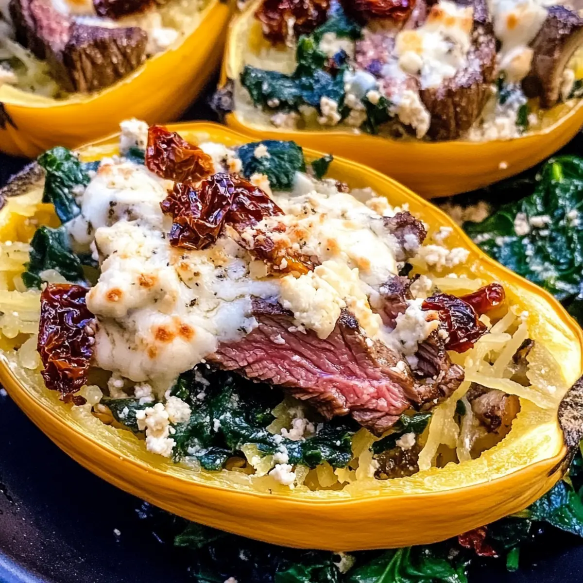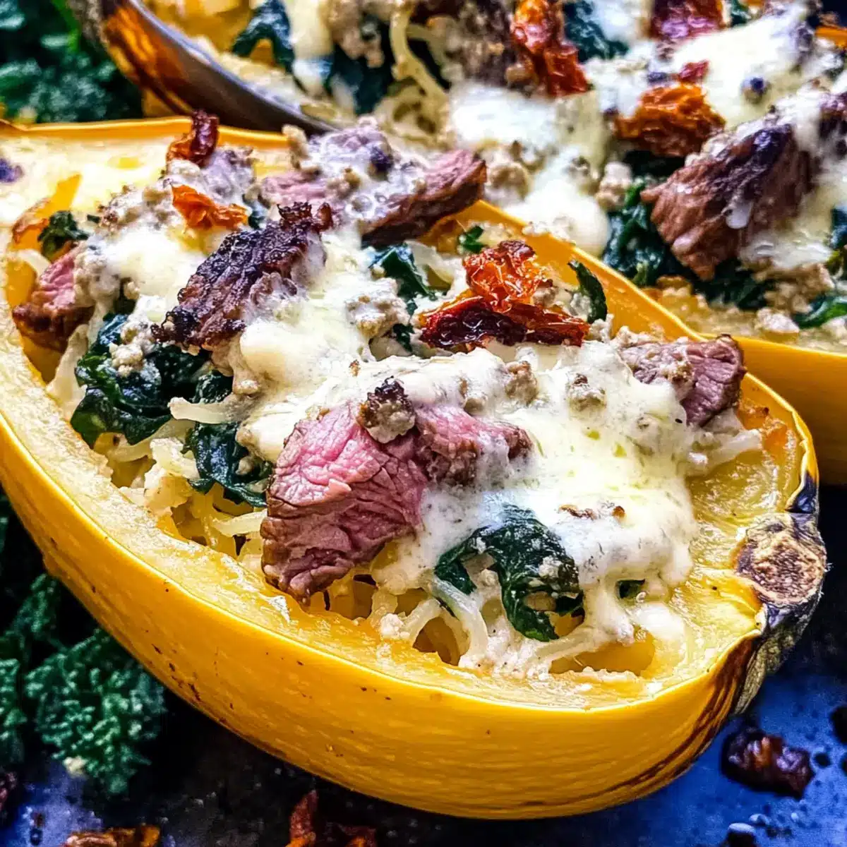 Creamy Steak Gorgonzola Alfredo Spaghetti Squash Delight