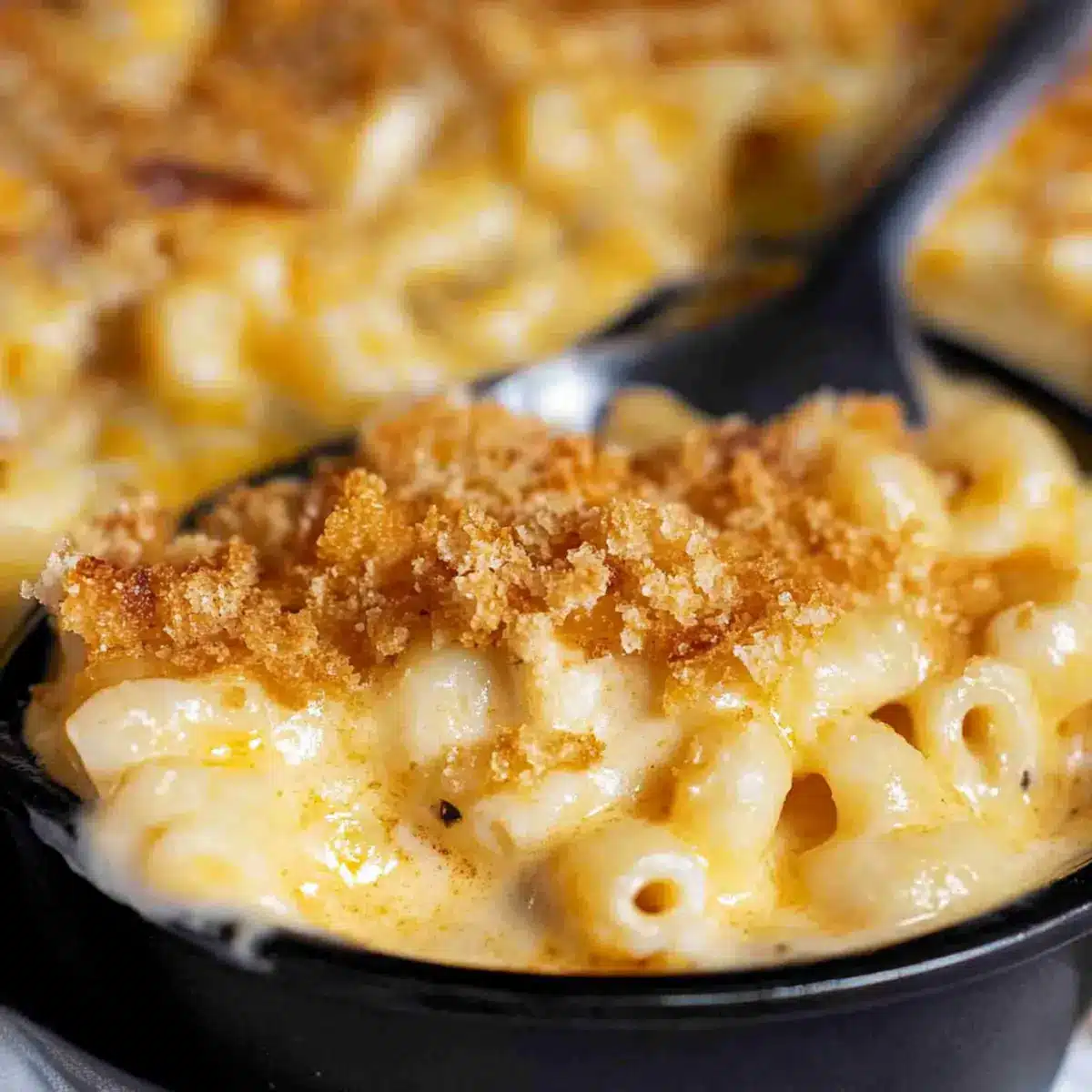 Preheat your oven to 350°F (175°C) and bake the dish uncovered for 20-25 minutes. Watch for the topping to turn golden and bubbly, forming a delightful crust atop the creamy mac and cheese. Once baked, allow it to sit for a few minutes to set before serving, enhancing the rich flavors and textures in every comforting bite.