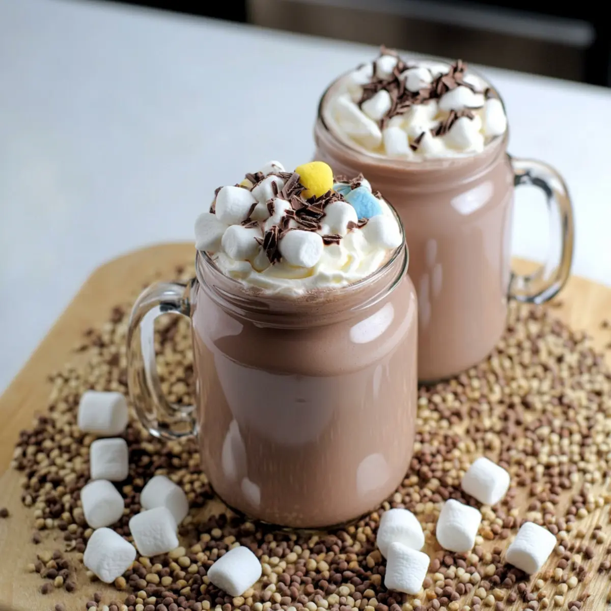 - Add your choice of toppings like mini marshmallows, chocolate sprinkles, or crushed candy canes.